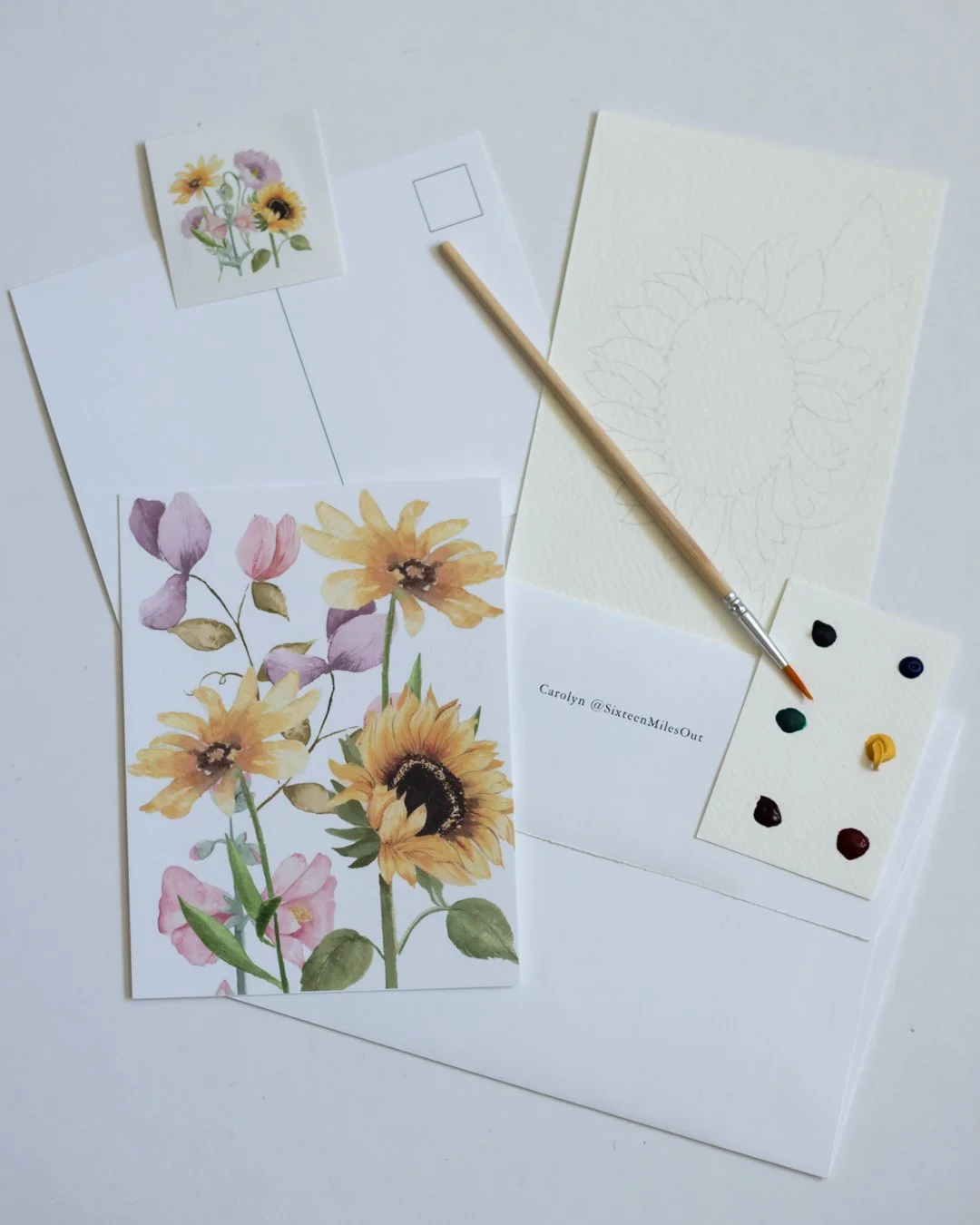 Art is something that I am also passionate about. Many years ago I had the idea to combine my love of writing letters with my love for both photography and watercolor.